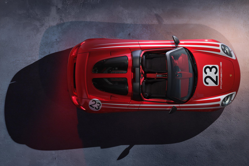 L'esthétisme a été renforcé par l'ajout d'éléments en carbone noir mat contrastant avec le rouge et le blanc de la carrosserie. Ces derniers sont disposés sur les ailes de toit, le montant A et le montant central, sur les caches des rétroviseurs extérieurs, l'espace de circulation d'air dans le bouclier avant et le diffuseur arrière. Les grilles du capot du moteur sont en noir mat anodisé. Les jantes en alliage léger à 5 branches sont peintes en noir et portent un écusson Porsche coloré.